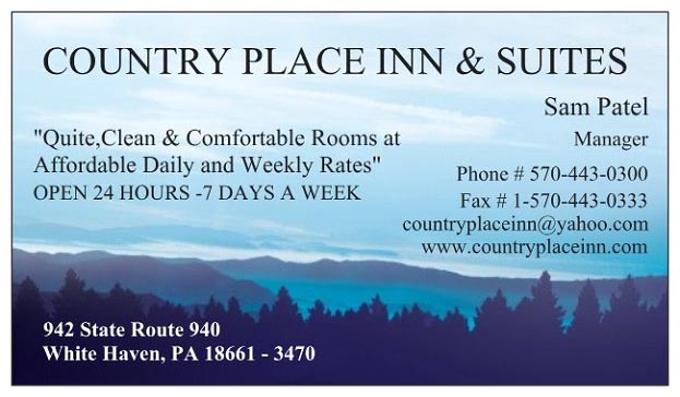 Each room at the Country Place Inn and Suites White Haven includes a microwave, refrigerator, and cable TV. They have an en suite bathroom and are air-conditioned.